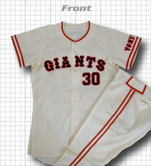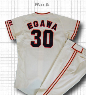 昔の選手物にしてはかなりデカイですね。このデザインは味があって上下セット、しかもあの江川さんですからね、手持ちの中でも最高クラスの物です。現役時代はストレートとカーブだけで打者を捻じ伏せる凄い投手で、オールスターで8者連続奪三振する程です。好調時のストレートは今で言う阪神の藤川球児投手のような来るのが分かっていても打てない物でした。また個人的に付き合いはないですが、ドームの駐車場通路なんかでお会いした時にはとても良い感じで接してくれました。イイ方ですよ。 |