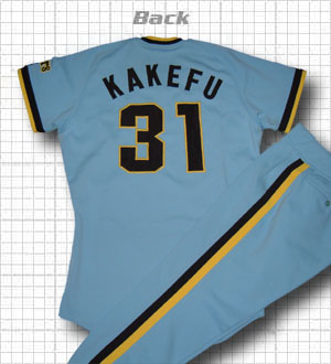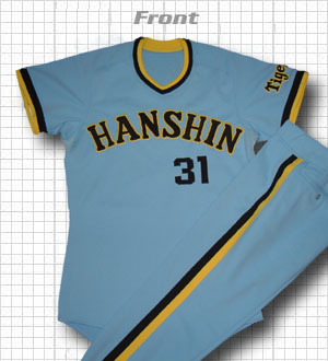 ニットでして大変味わい深く趣があります。掛布さんといえば縦じまのイメージですが、この頃もHR王を取ったりでかなりのご活躍です。優勝後のオープン戦で確か阪急の左ピッチャー??にぶつけられてからは左投手が嘘のように打てなくなってしまい中日戦での骨折など怪我もあって引退してしまいました。2000本安打は間違いないと思っていたので本当に残念でした。私の中でのミスタータイガースは彼です。すっごいイイ選手でした。 |
