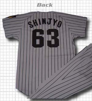 これは虎風荘にあった物です。新人時代の物でかなり使い込まれています。この頃は新庄選手も自分で洗濯していたのではないでしょうか。63番が懐かしいです。